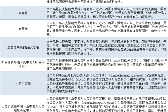 I godkendelsesprocessen for nye fødevareingredienser betyder "afslutning af gennemgang" ikke afslutningen, men er en indirekte måde for virksomheder at opnå godkendelse på. Selv om det ikke "anbefales til godkendelse", hvis det deklarerede råmateriale i det væsentlige svarer til eksisterende fødevareingredienser eller har en lang forbrugshistorie og er egnet til at blive inkluderet i forvaltningen af generelle fødevarer eller lokale specialfødevarer osv., kan det bestå proceduren for "afslutning af gennemgang" og blive kategoriseret i de tilsvarende kategorier, såsom i det væsentlige svarer til eksisterende nye fødevareingredienser eller med lang forbrugshistorie og egnet til at blive inkluderet i forvaltningen af generelle fødevarer eller lokale specialfødevarer. Alle kan bestå proceduren for "afslutning af undersøgelse" og klassificeres i de tilsvarende kategorier, såsom i det væsentlige svarende til eksisterende nye fødevarematerialer, administreret som almindelig mad, administreret som lokal specialfødevare eller mad med medicinsk oprindelse osv. og lovligt komme ind på markedscirkulationen.