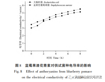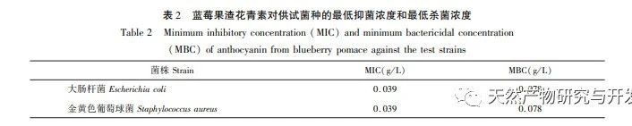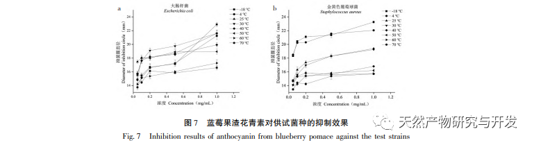 Denne undersøgelse brugte blåbærrester som testmateriale til at evaluere virkningerne af forskellige pH-værdier og temperaturer på farven og egenskaberne af anthocyaniner i blåbærrester under fødevareforarbejdning og -opbevaring. De antioxidante og antibakterielle aktiviteter blev evalueret og analyseret, og den antibakterielle mekanisme blev udforsket. Undersøgelsen viste, at inden for pH-området 2-8 udviste anthocyaniner i blåbærrester en betydelig farveændring fra dyb rød til dyb lilla; Under behandlingstemperaturforholdene på -18 til 70 °C faldt indholdet, antioxidantaktiviteten og den antibakterielle aktivitet af anthocyaniner i blåbærrester med forlænget behandlingstid. Anthocyaniner fra blåbærrester har vist gode antibakterielle virkninger på Escherichia coli og Staphylococcus aureus. Virkningsmekanismen er at forstyrre cellemembranens permeabilitet, hvilket fører til en stigning i proteinindholdet og indholdet af alkalisk fosfatase i bakterieopløsningen.