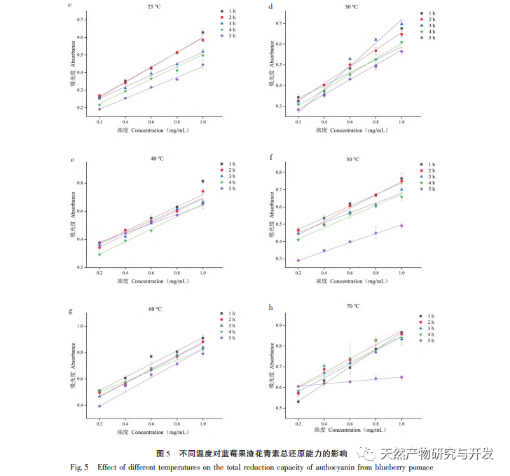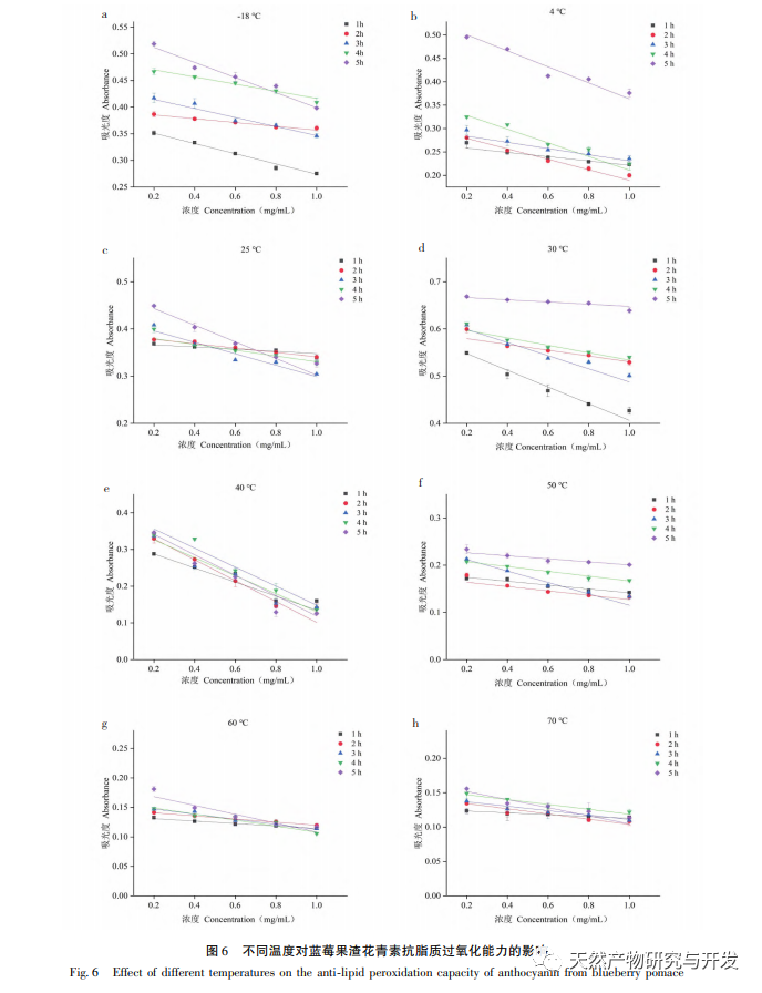 Denne undersøgelse brugte blåbærrester som testmateriale til at evaluere virkningerne af forskellige pH-værdier og temperaturer på farven og egenskaberne af anthocyaniner i blåbærrester under fødevareforarbejdning og -opbevaring. De antioxidative og antibakterielle aktiviteter blev evalueret og analyseret, og mekanismen for antibakteriel hæmning blev undersøgt. Målet er at lægge et teoretisk fundament for den praktiske anvendelse af udvikling af nye farvede fødevarekonserveringsfilm med antioxidant- og antibakterielle aktiviteter i fremtiden.