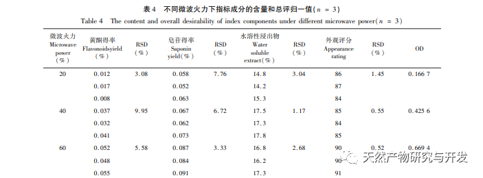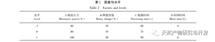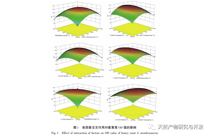 På baggrund af indledende eksperimenter brugte denne undersøgelse ekstraktionshastigheden af samlede flavonoider og samlede saponiner i Astragalus membranaceus kombineret med indholdet af vandopløselige ekstrakter og den samlede evalueringsnormaliseringsværdi af afkogningsstykkernes udseende som evalueringsindikatorer til at undersøge de fire vigtigste påvirkningsfaktorer for honningdosering, iblødsætningstid, behandlingstid og mikrobølgeeffekt. Response surface methodology blev brugt til at optimere mikrobølgebehandlingsteknologien for Astragalus membranaceus og sammenlignet med traditionelle forarbejdede produkter for at opnå en bedre behandlingsmetode og give et bredt anvendelsesområde for mikrobølgebehandling.