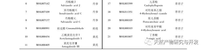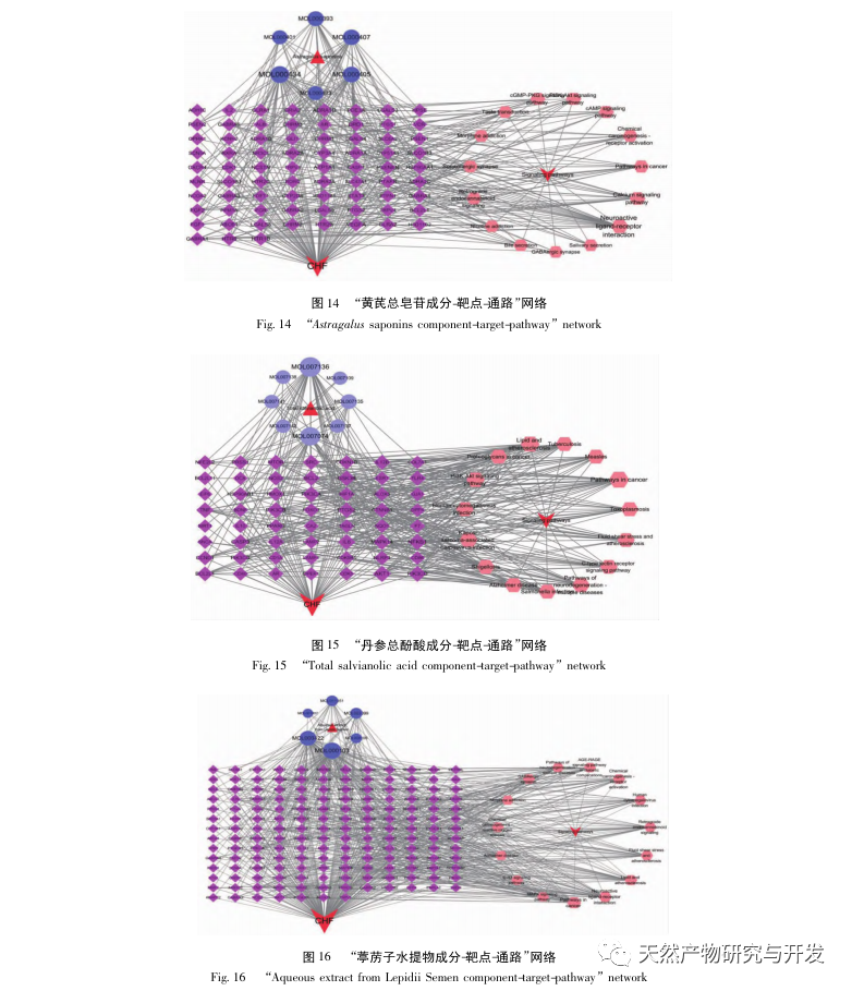 De fire komponenter, der er opnået gennem screening, nemlig totale saponiner af Astragalus membranaceus, totale phenolsyrer af Salvia miltiorrhiza, vandekstrakt af Scutellaria baicalensis og cinnamaldehyd, er repræsentative lægemidler til at nære qi, opvarme yang, fremme blodcirkulationen og gavne vand. Moderne farmakologiske undersøgelser har også vist, at totale saponiner af Astragalus membranaceus kan hæmme ventrikulær remodellering og forbedre hjertefunktionen hos CHF-rotter, og dens virkningsstyrke er dosisafhængig; Danshen total phenolsyre kan forbedre intracellulær calciumcirkulation og forbedre myokardial diastolisk og systolisk funktion. Vandekstraktet af Platycodon grandiflorus kan udøve virkninger mod hjertesvigt ved at ændre de metaboliske forstyrrelser hos rotter med hjertesvigt. Cinnamaldehyd kan effektivt forbedre rottehjertefunktionen, hæmme frigivelsen af inflammatoriske faktorer og dermed udøve en beskyttende virkning på hjertet.