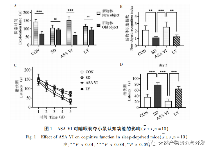Søvnmangel kan have omfattende og dybtgående effekter på kognitiv adfærd og er tæt forbundet med forekomsten af forskellige sygdomme. Denne undersøgelse viste, at søvnmangel påvirker musenes korttidshukommelse og rumlige indlærings- og hukommelsesevner betydeligt, øger antallet af mikroglia, øger ekspressionsniveauet for inflammatoriske faktorer og hæmmer neurogenesen i hippocampus hos voksne. Interventionen af den naturlige aktive ingrediens ASA VI forbedrede signifikant den kognitive funktion hos mus med søvnmangel, mens den hæmmede ekspressionen af pro-inflammatoriske cytokiner IL-1 β, TNF - α og IL-6 i hippocampus, øgede ekspressionsniveauerne af anti-inflammatoriske cytokiner IL-4, IL-10 og den neurotrofiske faktor BDNF og fremmede neurogenese i hippocampus. Dette indikerer, at ASA VI som et antiinflammatorisk og neurobeskyttende lægemiddel har den effekt, at det forbedrer indlæring og hukommelse hos mus med søvnmangel.