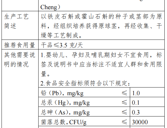 I henhold til "Food Safety Law of the People's Republic of China" og "Administrative Measures for the Review of the Safety of New Food Ingredients" bestilte National Health and Health Commission review-organet i overensstemmelse med de lovbestemte procedurer og organiserede eksperter til at gennemgå og godkende sikkerhedsvurderingsmaterialet for Dendrobium protocorm.