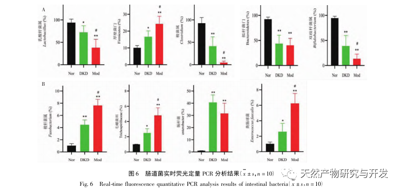 Forholdet mellem tarmens mikrobiota og DKD Qi Yin-mangel er blevet et af de varme emner i de senere år, og det antages, at tarmen og nyrerne spiller en afgørende rolle i immun- og betændelsesreaktioner samt i tarmslimhindens barriere. Hvis sammensætningen og funktionen af tarmens mikrobiota ændres, kan det føre til skader på tarmslimhinden, overføre toksiner fra kroppen til blodbanen, fremkalde eller forværre inflammatoriske immunreaktioner og fremskynde udviklingen af DKD. 160 tilfælde af diabetesnefropati med mangel på både qi og yin blev undersøgt. Det kliniske forsøg viste, at Bacteroides, Bifidobacterium og Lactobacillus hos DKD-patienter var betydeligt lavere end i kontrolgruppen, mens Enterobacteriaceae, Enterococcus, Yeast og Fusobacterium var højere end i kontrolgruppen. Forsøgsresultaterne viste, at indholdet af gavnlige bakterier som Bacteroidetes, Lactobacillus, Bifidobacterium og Clostridium i DKD og Mod faldt, mens indholdet af patogene bakterier som Clostridium, Molluscaceae, Escherichia coli og Enterococcus steg. Resultaterne var i overensstemmelse med tidligere undersøgelser. Samtidig viste det sig, at i modsætning til DKD steg mængden af Firmicutes, Clostridium, Molluscum og Enterococcus betydeligt i Mod, mens mængden af Lactobacillus, Clostridium og Bifidobacterium faldt betydeligt, hvilket tyder på, at disse bakterieslægter kan være tæt forbundet med Qi Yin-mangelsyndromet.