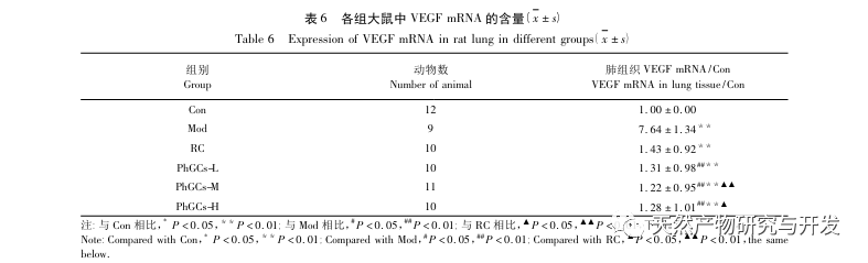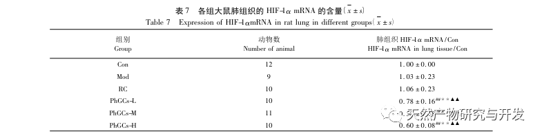 Samlet set viste PhGCs-M-gruppen blandt de tre doser af PhGCs den bedste effekt på CMS, mens PhGCs-H-behandlingen ikke viste nogen signifikant forbedring, hvilket kan hænge sammen med faldet i tarmoptagelsen af PhGCs-H. Sammenlignet med rhodiola rosea har PhGCs-M en bedre terapeutisk effekt på HIF-1 α mRNA og VEGF mRNA-indikatorer. Sammen med ressourcefordele har PhGC'er visse udviklingsmuligheder.