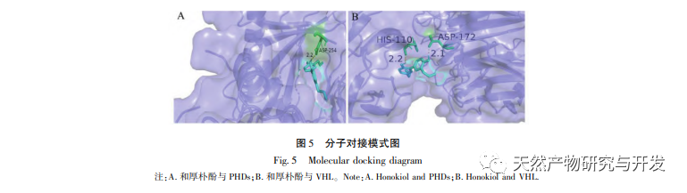 Under normoxiske forhold er udtrykket af HIF-1 α og VEGF lavt, men administration af magnolol fremmer signifikant udtrykket af HIF-1 α og VEGF-proteiner; Under hypoxiske forhold er HIF-1 α og VEGF stærkt udtrykt, og administration af honokiol hæmmer signifikant udtrykket af HIF-1 α og VEGF. Houpo phenol udviser forskellige regulatoriske virkninger på HIF-1 α og VEGF i forskellige tilstande, hvilket er af stor betydning for at studere dets farmakologiske mekanisme og udvikle dets anvendelse. Med hensyn til hvordan honokiol påvirker dannelsen og nedbrydningen af HIF-1 α, viste de molekylære dockingresultater i denne undersøgelse, at honokiol har god bindingsaktivitet med to nedbrydningsenzymer, PHD'er og VHL. Vi kan dog stadig ikke afklare, om det specifikke nedbrydningsenzym aktiveres eller hæmmes, hvilket også er en retning, der skal undersøges i fremtiden.