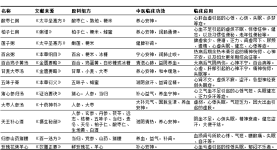 Forbedre søvnfunktionen af kinesiske urtemedicinske råvarer er hovedsageligt at nære hjertet og berolige sindet og byen for at berolige sindet to kategorier, så berolige sindet klasse af kinesisk medicin måltid er ofte opdelt i nære hjertet og berolige sindet og byen for at berolige sindet to kategorier. Nære hjertet og berolige sindet medicinsk kost ofte til sur jujube nød, cypres kerne, lilje, lotusfrø, jujube, rose, osv. til sammensætning af råvarer, dens rolle er moderat, ingen toksiske bivirkninger, let at tjene i lang tid; tung by af berolige sindet medicinsk kost, der almindeligvis anvendes som råmateriale til sammensætning af knogler, magnetit, vermilion og andre kinesiske medicinske urter, med visse toksiske bivirkninger, bør ikke serveres i lang tid, betragtes ikke som en generel udvikling af funktionelle fødevarer som en ressource. Litteraturkilder, råvareformler, hovedeffekter og kliniske anvendelser af almindelige medicinske diæter til næring af hjertet og beroligelse af sindet er opsummeret i tabel 3.