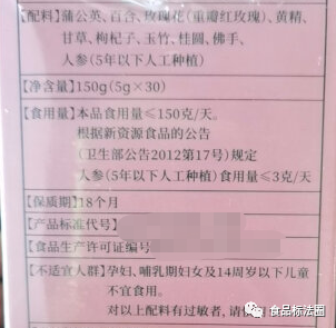 Hvis navnene på nye fødevareingredienser ikke mærkes i nøje overensstemmelse med kravene i bekendtgørelsen, kan det være vildledende. Tag "ginseng" som et eksempel, "ginseng" er inkluderet i "Listen over artikler, der kan bruges i helsekost", og de artikler, der er anført på listen, er begrænset til at blive brugt i helsekost; det tidligere sundhedsministeriums meddelelse nr. 17 fra 2012 specificerer, at "ginseng (kunstigt dyrket)" er inkluderet i listen over nye fødevareingredienser. Ginseng (kunstig)" er inkluderet i forvaltningen af nye fødevareråvarer. Derfor er det unøjagtigt at mærke "ginseng" direkte i ingredienslisten, og når det anvendes til mad som en ny fødevareingrediens, skal det mærkes med navnet "ginseng (kunstig dyrkning)" i meddelelsen.