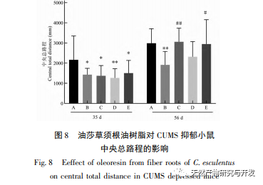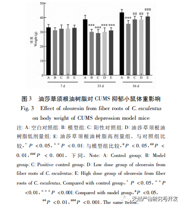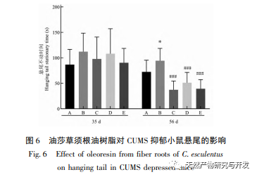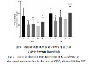 Baseret på UPLC/Q-TOF-MS-teknologi blev identifikationen af komponenterne i olieharpiks i rødderne af olieræddikegræs udført, og det blev konstateret, at α-kumarin (59.536%) var den vigtigste komponent i olieharpiks i rødderne af olieræddikegræs. Efter 35 dage med etablering af CUMS-depressionsmusemodellen faldt musenes vægt og sukkervandspræferenceprocent betydeligt efter administration (56d). Kortet over adfærden i det åbne felt viste mindre aktivitet i den centrale region, og hviletiden for haleophæng og tvungen svømning steg markant. Etableringen af CUMS-depressionsmodellen var vellykket og i overensstemmelse med de resultater, der er rapporteret i litteraturen. Olieharpiks fra roden af olieræddike kan lindre depressiv adfærd hos CUMS-mus, og dets antidepressive virkning kan opnås ved at regulere 5-HT-niveauer i serum, NE-niveauer, adfærdsændringer og genoprette hippocampal vævsintegritet for at lindre depressiv tilstand hos mus. Målkomponenten for den antidepressive virkning kan være alfa-vanillin, og der er behov for yderligere dybdegående forskning i den antidepressive mekanisme.