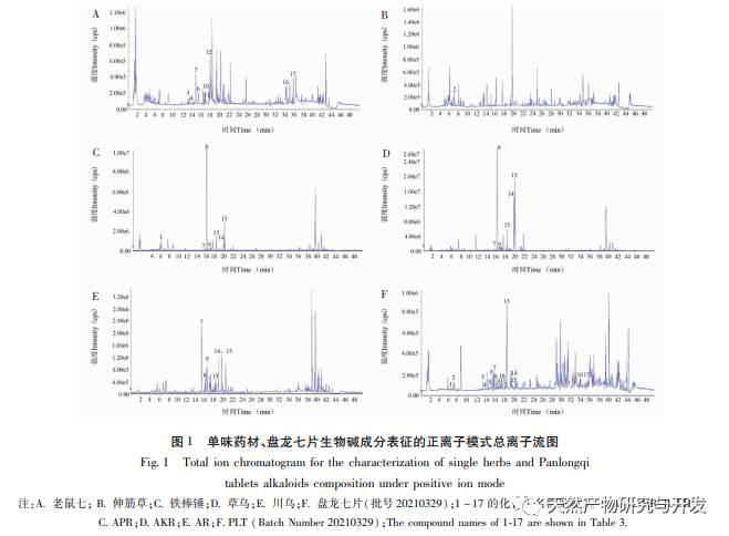Panlong Seven Tablets er et sammensat præparat bestående af 29 traditionelle kinesiske lægemidler, der stammer fra den hemmelige opskrift præsenteret af Wang Jiacheng, en berømt familie af knogleskadespecialister inden for traditionel kinesisk medicin. Klinisk bruges det hovedsageligt til at behandle smerter, hævelser og andre tilstande forårsaget af gigt, lændemuskelforstrækning og bløddelsskader. Forskning har vist, at alkaloider er en af hovedkomponenterne i Panlong Seven Tablets, som udøver antiinflammatoriske og smertestillende virkninger ved at nedregulere inflammatoriske faktorer, regulere makrofagpolarisering og andre veje. Resultaterne af moderne farmakologi viser, at nogle alkaloider er både aktive og giftige komponenter, som kan føre til alvorlige bivirkninger, hvis de bruges forkert. På nuværende tidspunkt bestemmer kvalitetskontrolstandarden for Panlongqi-tabletter (National traditional Chinese patent medicines and simple preparations Product Standard WS3-B-3998-98-1) ikke indholdet af alkaloider. For at forbedre kvalitetskontrolniveauet for Panlong Seven-tabletter og sikre deres kliniske sikkerhed og effektivitet anvendte denne undersøgelse derfor UPLC-Q-TOF-MS/MS til at karakterisere alkaloidkomponenterne med antiinflammatoriske og smertestillende virkninger i Panlong Seven-tabletter og etablerede derefter en kvantitativ metode til samtidig bestemmelse af deres indhold, hvilket gav et datagrundlag for at forbedre kvalitetskontrolniveauet for Panlong Seven-tabletter.