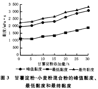 Fra figur 1 til 3 kan man se, at med den øgede tilsætning af sød kartoffelstivelse faldt blandingstemperaturen for de blandede meltyper gradvist, og den maksimale viskositet, den minimale viskositet, den endelige viskositet og dæmpningsværdien viste en gradvis stigning.
