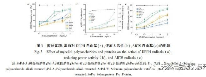 Ganoderma lucidum tilhører fylumet Basidiomycota, familien Actinobacteriaceae og slægten Ganoderma (Leyss. ex Fr.) Karst Lægesvampe er traditionelle fødevare- og medicinsvampe med dobbelt anvendelse i Kina, herunder forskellige aktive ingredienser som triterpener, polysaccharider, proteiner osv. De har en bred vifte af farmakologiske aktiviteter såsom antitumor, antioxidant og immunregulering. Lingzhi har en stærk evne til at berige selen. Selenrig Ganoderma lucidum opnås ved at dyrke Ganoderma lucidum som bærer for selenkonvertering, hvilket kombinerer den biologiske aktivitet af Ganoderma lucidum og selen. På nuværende tidspunkt fokuserer forskernes forskning hovedsageligt på dyrkning og stamdyrkning af selenrig Ganoderma lucidum, og relateret biologisk aktivitetsforskning udføres hovedsageligt gennem dyreforsøg med relativt få in vitro antitumoreksperimenter. Denne undersøgelse anvendte ultralydsassisteret alkalisk ekstraktion, vandekstraktion og alkoholudfældningsmetoder til at udtrække polysaccharider fra selenrig Ganoderma lucidum mycelium og ekstraherede opløselige proteiner fra mycelium ved hjælp af fosfatbufferopløsning som opløsningsmiddel. Vi undersøgte de selenrige Ganoderma lucidum myceliums polysakkariders og proteiners evne til at fjerne DPPH-frie radikaler og ABTS-frie radikaler, jernreduktionsevnen og den hæmmende effekt på spredningen af levercancerceller HCCLM, lungecancerceller A549 og orale cancerceller HSC-3. Selengruppen blev brugt som kontrol for at undersøge selens virkning på de aktive ingredienser og antioxidant- og antitumoraktiviteterne i Ganoderma lucidum. Give et teoretisk grundlag for den videre udvikling og anvendelse af selenressourcer.