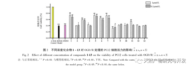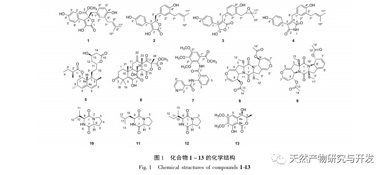 I denne undersøgelse blev de sekundære metabolitter fra den marine kilde Aspergillus terreus adskilt og oprenset ved hjælp af makroporøs adsorptionsharpiks, silicagel, gelsøjlekromatografi og semiforberedende flydende metoder. Tretten forbindelser blev isoleret og identificeret, blandt hvilke forbindelser 1 til 3 var γ-butyrolacton-derivater, forbindelse 4 var en klasse af marine naturlige alkaloid maleimid (2,5-pyrrolidon)-derivater, forbindelse 5 var statinlægemidlet lovastatin, forbindelse 6 var terpenforbindelse og forbindelse 7 var methylbenzoatforbindelse. Dens NMR-data blev rapporteret for første gang. Forbindelserne 8 til 12 var fem diketopiperaziner, blandt hvilke forbindelserne 8 og 9 var thiodiketopiperazin, og forbindelse 13 Det er en benzopyranonforbindelse. Foreløbige in vitro neurobeskyttende aktivitetstest viste, at forbindelserne 1, 3, 5, 6 og 7 kan reducere celleskader forårsaget af oxidativ stress betydeligt. Dette studie undersøgte den neurobeskyttende aktivitet af sekundære metabolitter og individuelle forbindelser i Aspergillus oryzae risfermenteringsprodukter, hvilket giver en videnskabelig reference til yderligere udforskning af den kemiske mangfoldighed af Aspergillus oryzae sekundære metabolitter i fremtiden.