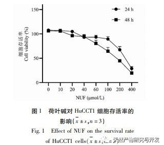 Das Screening natürlicher medizinischer Wirkstoffe mit Anti-Tumor-Wirkung aus Pflanzen und Tieren ist seit jeher ein Forschungsschwerpunkt sowohl im Inland als auch international. Nuciferin (NUF) wird aus den getrockneten Blättern von Nelumbo nucifera Gaertn, einer Pflanze aus der Familie der Nymphaeaceae, gewonnen. Es hat eine gewisse antitumorale Aktivität, aber über seine Wirkung auf ICC-Zellen wird selten berichtet. In dieser Studie wurden die Auswirkungen des Lotusblatt-Alkaloids auf die Proliferation und den Glykolyseprozess von HuCCT1-Zellen untersucht und sein Wirkmechanismus vorläufig erforscht, was eine theoretische Grundlage für die Entwicklung sicherer und wirksamer therapeutischer Mittel gegen ICC darstellt.