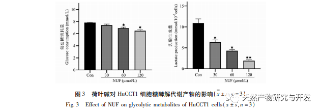 Die moderne pharmakologische Forschung zeigt, dass die aktive Komponente des Lotusblatt-Alkaloids, das aus dem Lotusblatt extrahiert wird, eine gewisse wachstumshemmende Wirkung auf viele Tumorzellen hat, wie z. B. Leber-, Lungen- und Brustkrebs, und ihre Empfindlichkeit gegenüber Chemotherapeutika verbessern kann. In dieser Studie wurde festgestellt, dass eine bestimmte Konzentration von Lotosblattalkaloid die Proliferation von HuCCT1-Zellen in vitro deutlich hemmen kann und positiv mit der Verringerung des Glukoseverbrauchs und der Laktatproduktion korreliert ist. Kohlenhydrate sind wichtige Energiequellen für zelluläre Lebensvorgänge, und der Warburg-Effekt deutet darauf hin, dass Krebszellen selbst unter normalen Sauerstoffbedingungen Energie vorzugsweise über die Glykolyse und nicht über aerobe Stoffwechselwege bereitstellen. Ein hohes Maß an Glykolyse kann schnelle Energie für das Wachstum von Krebszellen liefern, und ihre Produkte wie Brenztraubensäure und Milchsäure liefern auch Rohstoffe für die Synthese von Krebszellstoffen und fördern die Metastasierung und Invasion von Krebszellen. Daher wird spekuliert, dass die Hemmung der HuCCT1-Zellproliferation durch Lotosblattalkaloide mit ihrer Hemmung des zellulären Glykolyse-Stoffwechsels zusammenhängt.