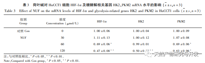 Eine pharmakologische Netzwerkanalyse ergab eine hohe Korrelation zwischen Matrin und HIF-1 α sowie Zielen wie TNF, INS, EGFR usw. HIF-1 α ist an zahlreichen Prozessen wie Glukosestoffwechsel, Zellproliferation, Invasion und Metastasierung sowie Entzündungsreaktion in Tumorzellen beteiligt. Es kann die Aktivität von Glukosetransportern (GLUT) und verschiedenen glykolytischen Enzymen wie HK2, PKM2 und Pyruvat-Dehydrogenase-Kinase 1 (PDK1) aktivieren und ist direkt am Glykolyseprozess beteiligt, was die Tumorprogression erheblich fördert. Hexokinase (HK) und Pyruvatkinase (PK) sind zwei Schlüsselkinasen im Prozess der Glykolyse und regulieren die Anfangs- bzw. Endphase des Prozesses. In dieser Studie wurde festgestellt, dass die mRNA-Spiegel und die Proteinexpression von HIF-1 α und den glykolytischen Schlüsselenzymen HK2 und PKM2 in den Zellen mit der Erhöhung der Lotosblattalkaloidkonzentration allmählich abnahmen. Daher wird spekuliert, dass Lotusblattalkaloid den Glykolyseprozess von HuCCT1-Zellen beeinflussen kann, indem es die Aktivität von HIF-1 α reduziert.