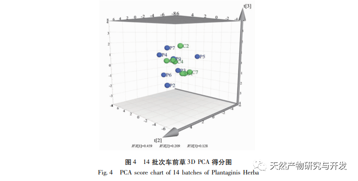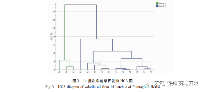 Die Gleichwertigkeit traditioneller chinesischer Medizin verschiedener Herkunft ist ein wichtiger Aspekt bei der Bewertung der Qualität der chinesischen Medizin. Unsere Forschungsgruppe hat zuvor die GC-MS-Technologie in Kombination mit Chemometrie eingesetzt, um die flüchtigen Bestandteile von Yangchun-Sandkernen, Grünschalensandkernen, Sichuan-Gaoben und Liao-Gaoben zu vergleichen und zu untersuchen. Auf der Grundlage der Ergebnisse von HCA und PCA können Yangchun-Sandkern und Grünschalensandkern sowie Chuangaoben und Liaogaoben vollständig voneinander getrennt werden. Allerdings zeigte diese Studie, dass es 9 gemeinsame Komponenten zwischen den 7 Chargen von Plantago asiatica und den 7 Chargen von Platycodon grandiflorus gab, mit relativen Prozentsätzen, die mehr als 80% ausmachten, und der Inhalt war höher in Palmitinsäure, Linolsäure und Alpha-Linolensäure; Von den Ergebnissen der Ähnlichkeitsanalyse ist die Ähnlichkeit aller Chargen über 0.967, was auf eine hohe Gesamtähnlichkeit hindeutet. Aus den Ergebnissen der HCA- und 3D-PCA-Klassifizierung geht hervor, dass alle 14 Partien von Plantago asiatica nicht vollständig nach Sorten unterschieden werden können. Durch die Verwendung des OPLS-DA-Modells mit VIP-Werten über 1 wurden die Komponenten, die signifikant zu der oben genannten Klassifizierung beitragen, als Palmitinsäure, Linolsäure und Alpha-Linolensäure identifiziert. Zusammenfassend lässt sich sagen, dass die ätherischen Ölbestandteile vor dem Auto und vor der Pritsche sehr ähnlich sind, so dass es eine gewisse wissenschaftliche Grundlage dafür gibt, dass beide als dieselbe Heilpflanze verwendet werden können. Es lohnt sich, weiter zu untersuchen, ob ihre nichtflüchtigen Bestandteile dieselben Eigenschaften aufweisen.