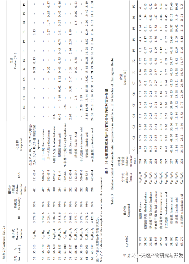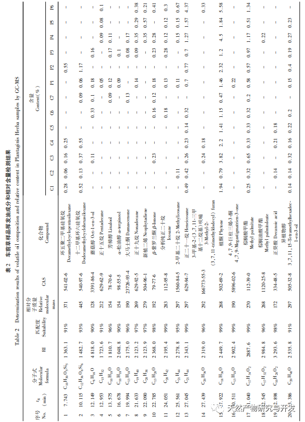 Unterschiede und Gemeinsamkeiten der ätherischen Ölkomponenten von Plantago asiatica auf der Grundlage einer GC-MS-Analyse