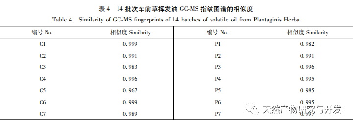 Zusammenfassend lässt sich sagen, dass in dieser Studie zum ersten Mal die GC-MS-Technologie in Verbindung mit chemischen Modellen eingesetzt wurde, um die ätherischen Ölkomponenten von Plantago asiatica und Plantago asiatica zu vergleichen, und dass die ätherischen Ölkomponenten beider Pflanzen sehr ähnlich sind. Damit ist der Grundstein gelegt, um die wissenschaftliche Bedeutung der chinesischen Heilpflanze Plantago asiatica - "eine Medizin, mehrere Quellen" - zu ergründen.