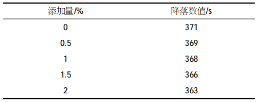 El valor de aterrizaje es uno de los índices de calidad de la harina de trigo, que se utiliza para reaccionar al tamaño de la actividad de la α-amilasa en el grano de trigo, cuanto menor es el valor, mayor es la actividad de la α-amilasa; por el contrario, cuanto menor es la actividad, la Tabla 5 muestra el efecto de diferentes cantidades de almidón éster de ácido acético en el valor de aterrizaje de la harina.