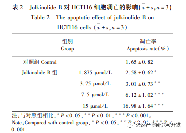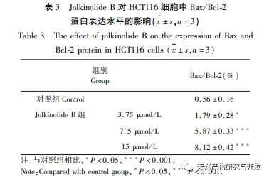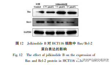 Les principaux mécanismes d'action des médicaments antitumoraux sont l'induction de l'apoptose des cellules tumorales, l'inhibition du cycle cellulaire et la suppression de la migration. Les résultats expérimentaux au niveau cellulaire ont montré que la jolkinolite B inhibait de manière significative la prolifération des cellules HCT116, favorisait l'apoptose des cellules et inhibait la migration des cellules. Lorsque Bax est fortement exprimé dans les cellules, celles-ci sont sensibles aux signaux de mort et favorisent l'apoptose. Lorsque Bcl-2 est fortement exprimé, il peut former des hétérodimères avec Bax, ce qui inhibe l'apoptose cellulaire. Le rapport Bax/Bcl-2 dans les cellules joue donc un rôle important dans la détermination de la sensibilité à l'apoptose cellulaire. Par conséquent, les expériences de validation par Western blot au niveau cellulaire ont montré que la Jolkinolite B augmentait de manière significative le rapport Bax/Bcl-2, favorisant l'apoptose dans les cellules HCT116. D'après les résultats de l'analyse pharmacologique du réseau, le Jolkinolide B peut intervenir dans le CRC par le biais de cibles et de voies multiples, et son activité antitumorale peut être liée à son impact sur l'expression des gènes apoptotiques Bax et Bcl-2.