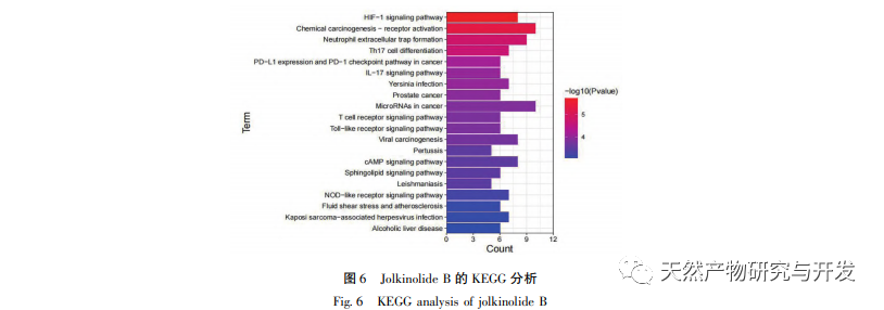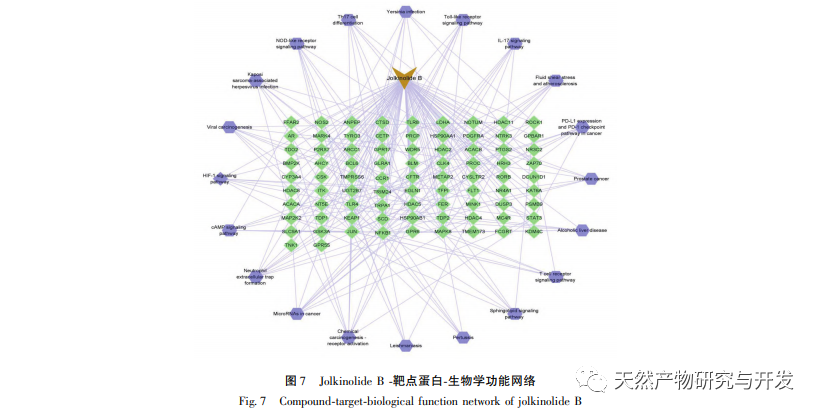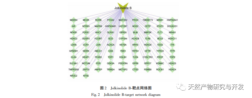 Les métabolites secondaires actifs du venin de loup sont principalement des terpénoïdes, dont le contenu est abondant. Au début, notre groupe expérimental a isolé des diterpènes structurellement divers tels que l'ent abietane, le rosane et des dimères de diterpénoïdes à partir des racines séchées d'Euphorbia lanceolata, une plante médicinale qui est à l'origine de l'épine dorsale. Parmi eux, le diterpène ent abietane Jolkinolite B (structure présentée dans la figure 1) peut inhiber efficacement la prolifération des cellules tumorales du côlon SW480 (IC50=9,5 μ mpl/L), fournissant une base matérielle pour le traitement du CCR, mais le mécanisme d'action n'est pas encore clair. Compte tenu de la base des recherches précédentes, nous prévoyons d'utiliser des méthodes de pharmacologie de réseau combinées à des expériences cellulaires in vitro pour explorer le mécanisme d'action de la substance active Jolkinolide B dans le traitement du CCR, fournissant des preuves expérimentales pour le développement ultérieur de médicaments et les applications cliniques.