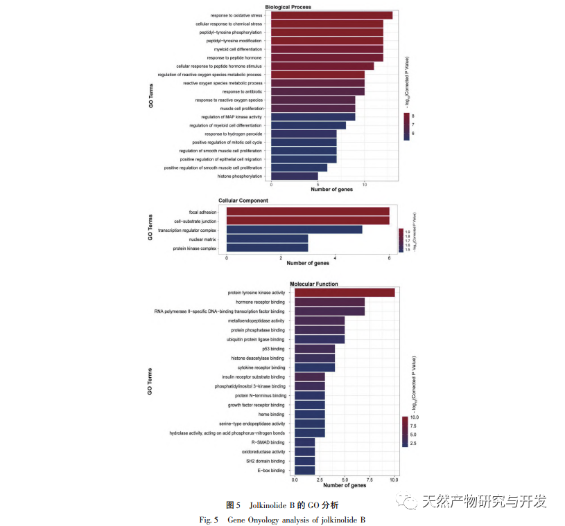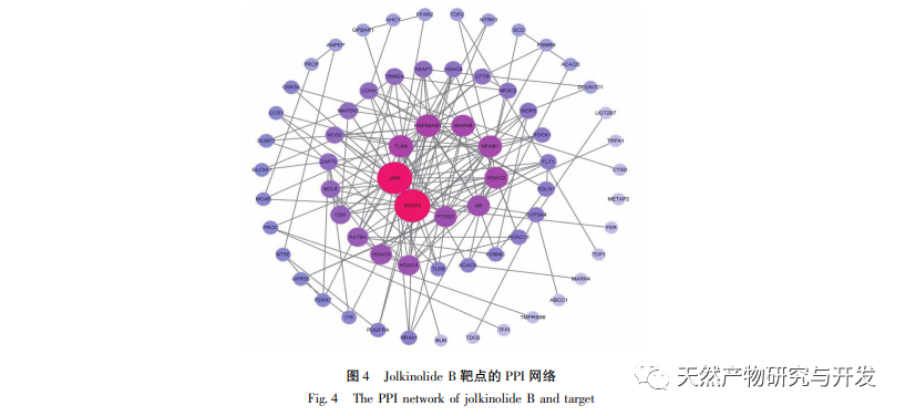En résumé, cette étude a appliqué des techniques de criblage d'activité, de bioinformatique et d'ancrage moléculaire pour analyser le mécanisme du Jolkinolide B dans la prévention et le traitement du cancer colorectal (CRC) sur la base de la corrélation de réseau entre l'ingrédient actif Jolkinolide B dans la médecine traditionnelle chinoise du fruit du loup et les protéines cibles, les voies de signalisation et les fonctions biologiques apparentées. Les résultats ont montré que ce composé traite le CCR avec de multiples cibles, voies et fonctions biologiques, ce qui oriente les recherches sur le mécanisme du Jolkinolide B dans la prévention et le traitement du CCR. Dans cette optique, ce projet continuera à l'avenir à mener des recherches sur les mécanismes en combinant des méthodes de biologie moléculaire et de physiopathologie.
