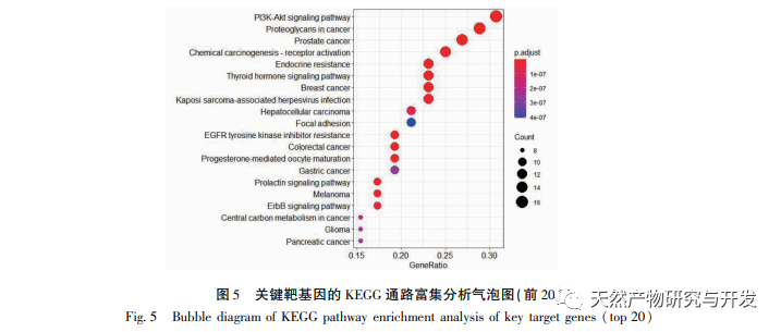 Les résultats de l'enrichissement des voies KEGG ont montré que la voie de signalisation PI3K/AKT et les protéoglycanes étaient impliqués dans 105 voies de signalisation connexes, notamment le cancer, le cancer de la prostate, l'activation des récepteurs de chimiokine, la résistance endocrinienne et la résistance aux inhibiteurs de la tyrosine kinase du récepteur du facteur de croissance épidermique (P<0,01). Parmi eux, le plus préoccupant est la voie de signalisation phosphatidyl-3-kinase (PI3K)/sérine thréonine protéine kinase (AKT). La voie de signalisation PI3K/AKT est impliquée dans la régulation du métabolisme cellulaire, de la croissance, de la prolifération, de la différenciation et de la synthèse des protéines. Des mutations dans la voie de signalisation PI3K/AKT ont été détectées dans de nombreuses tumeurs humaines. Les données de la recherche montrent que jusqu'à 70% à 100% des patients atteints d'un cancer de la prostate avancé présentent une dysrégulation de la voie PI3K. On a également découvert que la voie de signalisation PI3K/AKT joue un rôle important dans la progression du cancer de la prostate hormonosensible vers le cancer de la prostate résistant à la castration, et que son mécanisme d'action peut être lié à la régulation de la voie de signalisation du récepteur des androgènes (AR), ce qui peut servir de biomarqueur potentiel pour le cancer de la prostate résistant à la castration. À l'heure actuelle, les inhibiteurs liés à la voie de signalisation PI3K/AKT, tels que l'AZD5363, sont entrés dans la phase d'essai clinique et ont obtenu des effets thérapeutiques significatifs. L'étude des inhibiteurs liés à cette voie présente un intérêt significatif pour le traitement du CPRC.