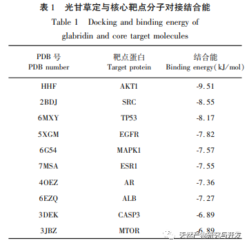 En résumé, cette étude a analysé et prédit le mécanisme d'action potentiel de la glycyrrhizine sur le cancer de la prostate résistant à la castration par le biais de la pharmacologie des réseaux, et l'a vérifié par le biais de l'ancrage moléculaire et d'expériences cellulaires in vitro. Les résultats ont montré que la glycyrrhizine peut inhiber la prolifération et induire l'apoptose des cellules PC-3, et que son mécanisme est lié au processus de phosphorylation de la protéine AKT. Par conséquent, nous supposons que son mécanisme anti-CRP peut principalement passer par la régulation de la phosphorylation des protéines liées à la voie de signalisation PI3K/AKT. Cette étude fournit non seulement des idées de recherche pour explorer le mécanisme moléculaire du Guanggancao Ding dans le traitement du cancer de la prostate résistant à la castration, mais aussi une méthode efficace pour le développement et l'application clinique de médicaments antitumoraux contenant des flavonoïdes dans la réglisse.