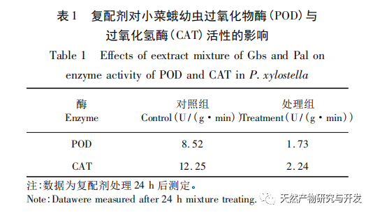 A vegyületeknek a gyémántmoly lárvákra gyakorolt toxikus hatása többszörös szinergikus hatásmechanizmusok eredménye. A növényi eredetű biopeszticidek összetett és változatos hatóanyagokat tartalmaznak, míg a több növényi kivonaton alapuló vegyes készítmények még összetettebbek. Miután a kivonatok hatóanyagai bekerülnek a mezőgazdasági kártevők szervezetébe, szinergikusan több célpontra is hathatnak, nem pedig egyetlen célpontra, ezáltal befolyásolva különböző fiziológiai funkcióikat, például az emésztést, az anyagcserét, az idegeket és a keringést, ami olyan egyenértékű hatásokat eredményez, mint a táplálék megtagadása, az altatás és a pusztulás. Ez a vizsgálat megállapította, hogy a Gbs és Pal kivonatok kombinációjával történő kezelés után a gyémántmoly lárvák bélrendszerének alakjában, színében és szerkezetében nem volt jelentős változás a kontrollcsoporthoz képest, ami azt jelzi, hogy a kombinációnak nem volt jelentős romboló hatása a gyémántmoly emésztőrendszerére; azonban jelentősen csökkentette az AchE és a CarE aktivitását a rovar testében. Az AchE katalizálhatja az acetilkolin hidrolízisét, befolyásolva a kolinerg idegi jelátvitelt és szabályozva az idegszövet fejlődését és regenerációját. A CarE képes katalizálni a zsíros karbonsavészterek, aromás észterek, aromás aminok és más vegyületek bomlását, méregtelenítő enzimfunkciót gyakorolva és a rovartestet rovarölőszer-rezisztenciával felruházva. Az AchE és CarE aktivitás csökkenése azt jelzi, hogy a vegyületben található hatóanyagok, mint például a szaponinok, glikoproteinek, fenolsavak, laktonok csökkenthetik a fent említett enzimgének expresszióját a gyémántmolyban, vagy csökkenthetik az enzimaktivitást az AchE és CarE kötődésével, hogy befolyásolják az enzimmolekulák térbeli szerkezetét, ami a gyémántmoly idegjelátvitelének és méregtelenítő funkciójának gyengüléséhez vezet. A vegyület hatóanyaggal történő kezelés alatt a gyémántmolyban a peroxidáz és a kataláz aktivitása jelentősen csökkent a kontrollcsoporthoz képest, ami azt jelzi, hogy a vegyület hatóanyag a rovar antioxidáns rendszerébe is beavatkozhat, ami az antioxidáns rendszer súlyos egyensúlyhiányát és a szabad gyökök nagymértékű felhalmozódását okozza, ami a sejtek szerkezetében és élettani funkcióiban rendellenességekhez vezet. Ezért a Gbs és a Pal kivonatok kombinációjának a gyémántmoly lárvákra gyakorolt toxikus hatása nem egyetlen mechanizmustól függhet, hanem inkább több mechanizmus szinergikus hatásának eredménye.