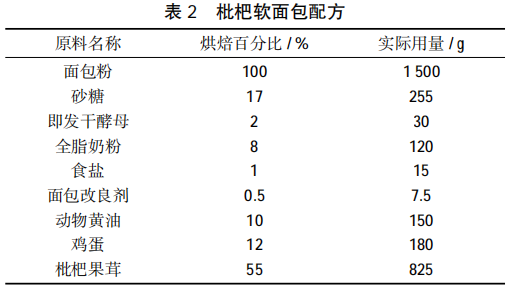Loquat soft bread recipe is shown in Table 2.