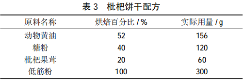 Loquat cookie recipe is shown in Table 3.