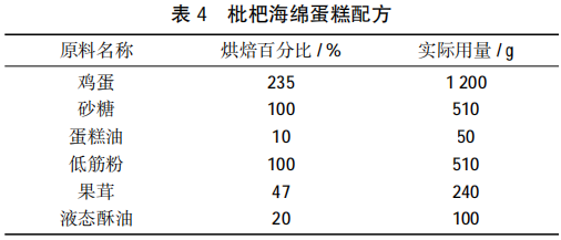 See Table 4 for the recipe of loquat sponge cake.