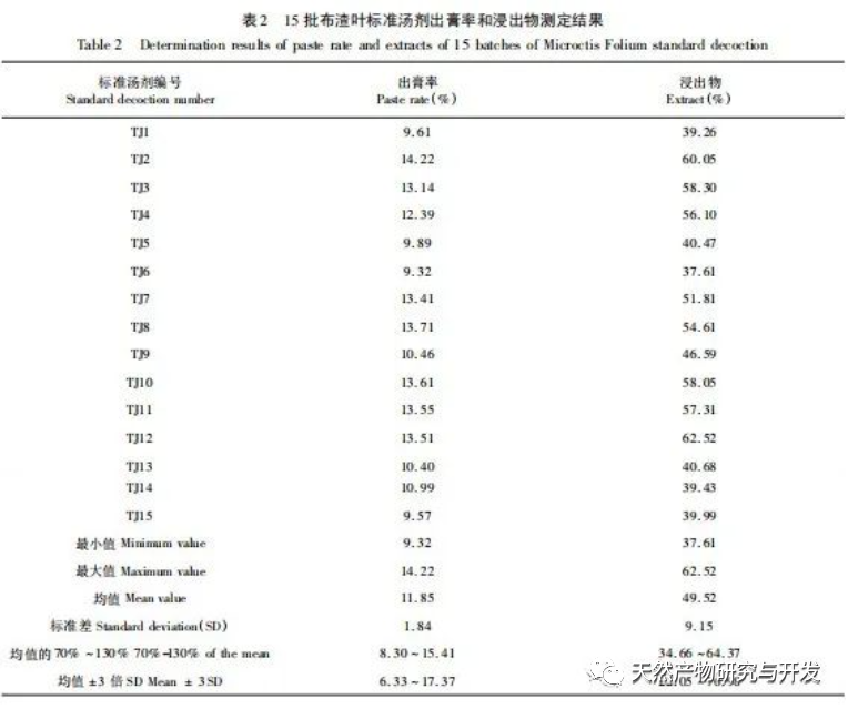 Лекарственные травы Bu Zha Ye в основном распространены в Гуандуне, Гуанси и Хайнане и относятся к аутентичным лекарственным травам, производимым в Гуандуне. 15 партий лекарственных трав Bu Zha Ye были собраны из трех вышеупомянутых районов производства, что свидетельствует о достаточной репрезентативности. Из результатов определения содержания трех флавоноидов в 15 партиях стандартного экстракта отвара, экстракта и 15 партиях отвара Bu Zha Ye видно, что между образцами из разных партий существуют определенные различия, причем максимальные и минимальные значения отличаются примерно в два раза. Это различие связано с качеством самих лекарственных материалов и соответствует требованиям Технических требований. Явных аномальных значений нет.