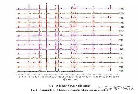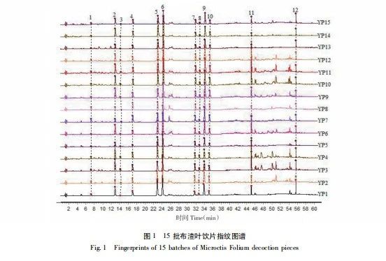 Качество Bu Zha Ye относительно легкое, но его химический состав сложный. В процессе обработки отвара большое количество компонентов переливается через край, в результате чего в стандартном отваре появляется больше примесей, что влияет на хроматографическое разделение и анализ эффективных ингредиентов. При использовании растворителей с высокой полярностью, таких как метанол и этанол, для обработки стандартного отвара базовая линия спектра отпечатков нестабильна, хроматографическое разделение пиков плохое, хроматографические пики беспорядочны, и есть много маленьких пиков. Поэтому в методе предварительной обработки стандартных образцов отвара был исследован метод разделения, очистки и обогащения с помощью экстракции этилацетатом, чтобы уменьшить влияние примесей, и проведено сравнение с традиционными методами обработки. Результаты показали, что использование этилацетата в качестве экстракционного растворителя позволяет значительно улучшить влияние пиков примесей, обеспечить чистоту и разделение основных хроматографических пиков, а также решить проблемы нестабильной хроматографической базовой линии и малого поглощения некоторых хроматографических пиков. При исследовании условий хроматографирования были изучены различные системы элюирования подвижной фазы, такие как ацетонитрил-0,1% раствор фосфорной кислоты, ацетонитрил-0,1% раствор уксусной кислоты, метанол-0,1% раствор муравьиной кислоты, метанол-0,1% раствор уксусной кислоты и т.д. Результаты показали, что использование раствора метанола-0,1% уксусной кислоты в качестве элюирующей системы приводит к увеличению числа хроматографических пиков и лучшему общему разделению. Учитывая создание спектров отпечатков пальцев с помощью сверхвысокоэффективной жидкостной хроматографии, выбор хроматографических колонок имеет решающее значение. Поэтому в данном эксперименте исследовались хроматографические колонки с различными размерами частиц и марками, и в итоге была выбрана хроматографическая колонка Agilent ZORBAX SB C18 (2,1 мм × 150 мм, 1,8 мкм), обладающая наилучшей формой пика и разрешением каждого общего пика отпечатков пальцев.