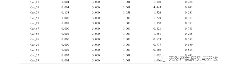 Результаты определения каротиноидных компонентов показали, что в образцах красного астрагала разных цветов было обнаружено в общей сложности 68 видов каротиноидных компонентов. Среди них было обнаружено 17 компонентов, в том числе 2 каротиноида и 15 лютеиновых компонентов. Необнаруженные метаболиты могут быть связаны с отсутствием таких компонентов или их содержанием ниже предела обнаружения прибора. Дальнейший анализ содержания каротиноидов показал, что среди четырех цветных образцов наблюдались максимальные и минимальные значения содержания 17 видов каротиноидов. Распределение этих компонентов варьировалось среди образцов красного астрагала, причем значительные различия (P<0,05) наблюдались по лютеину и зеаксантину среди четырех цветных образцов. Различия по остальным 15 компонентам не были значительными. На синтез каротиноидов и других компонентов в лекарственных растениях влияют свет, сбор урожая, обработка на производстве и переработка, поэтому формирование различий может быть связано с комплексным воздействием этих факторов.