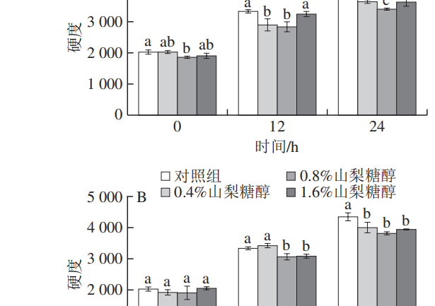 Cooked rice after steaming had the fastest aging rate within 24 h, and then leveled off at a later stage. Experiments were conducted to analyze the changes in hardness of rice treated with oligofructose, sorbitol and maltitol at 4 ℃ for 24h.