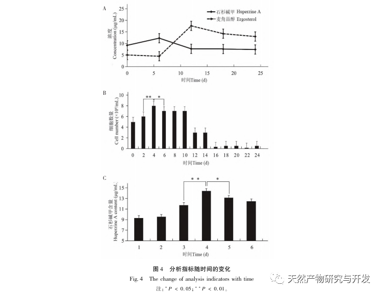 Bu çalışmada, yabani yılanayağı baldıranının evcilleştirme koşulları ve doku kültürü ortamı koşulları üzerinde deneyler yapılmıştır. En uygun kültür koşulları 100 Lux ışık yoğunluğu, 95% nem, MS sıvı ortamı, 20.0g/L sükroz, 2,4-D5.0mg/L ve KT1.0mg/L olarak belirlenmiştir. CCS'nin dinamik büyüme sürecini yansıtmak için huperzine A ve ergosterol olmak üzere iki bileşiğin göreceli değişimleri kullanılmıştır. Dördüncü gün, dönüm noktasına dayalı olarak hasat ve alt kültür için en uygun zaman olarak belirlenmiştir. CCS ile 4 günlük ekimden sonra, huperzin A içeriği 49.34% artarak maksimum değerine ulaşmıştır. Kültür sistemindeki genel huperzin A içeriği önce artan sonra azalan bir eğilim göstermiştir. Bunun nedeni, büyümenin sonraki aşamasında, endofitik mantarların bitki hücresi farklılaşma yeteneğinden daha güçlü üreme yeteneğine sahip olması, kültür ortamındaki besinler ve büyüme alanı için rekabet etmesi ve hücre sayısında azalmaya neden olmasıdır. Bu nedenle, hasat ve alt kültür zamanının seçimi, ortak kültür sisteminde huperzin A'nın giderek zenginleşmesini sağlamanın anahtarıdır. Aynı zamanda, bitki hormonu 2,4-D konsantrasyonunun sistem üzerinde önemli bir etkisi vardır. 2,4-D, bitki organlarının farklılaşmasını ve kallus dokusunun indüklenmesini teşvik eder, ancak konsantrasyon çok yüksek olduğunda hücre farklılaşması üzerinde inhibe edici bir etkiye sahiptir. Bu nedenle, kültür sisteminde optimum konsantrasyon olarak 5mg/L kullanılmıştır. Bu deney, huperzin A'nın biyosentezini sağlamak için bir ortak kültür sistemini başarıyla kullanmıştır. Bu yöntem, geleneksel sabit kavramların üstesinden gelir çünkü bitki somatik hücre kültürü önceden kapsamlı bir sterilizasyon gerektirmez. Bitki somatik hücreleri ve endofitik mantarlar birlikte kültüre alınabilir ve huperzin A üretimi belirli oranlarda teşvik edilebilir. Yetiştirme döngüsü doğru bir şekilde kavrandığı sürece, bu kullanışlı ve hızlı yöntem, bitki kaynaklarının korunması ve huperzin A'nın önemli biyoaktif maddelerinin zenginleştirilmesi için büyük önem taşıyan huperzin A'yı biriktirmek için kullanılabilir.