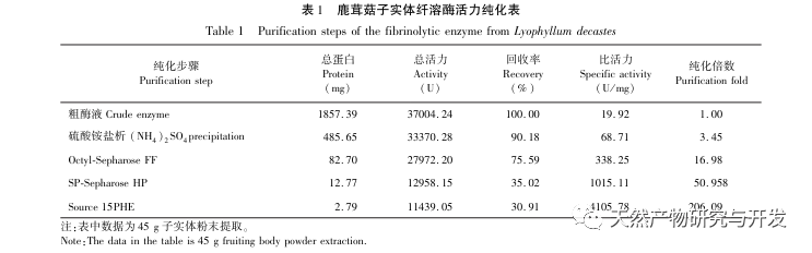 Bu çalışmada, modern kromatografik ayırma teknolojisi kullanılarak kadife boynuz mantarının meyve veren gövdesinden bir fibrinolitik enzim izole edilmiş ve saflaştırılmıştır. Fibrinolitik enzimin N-terminal on iki amino asit dizisi Gly Ala Val Thr Gln Asn Ala Pro Trp Gly Leu'dur. NCBI veri tabanı ile karşılaştırıldıktan sonra, fibrinolitik enzim yeni bir fibrinolitik enzim olarak tanımlanmıştır. Fibrinolitik enzimin spesifik aktivitesi 4105.78U/mg, saflaştırma faktörü 206.09 ve aktivite geri kazanım oranı 30.91%'dir. Native PAGE elektroforezi ve SDS-PAGE elektroforez tespiti yoluyla, fibrinolitik enzimin bağıl moleküler ağırlığının 30.9 kDa olduğu bulunmuştur. Yukarıdaki sonuçlar, kadife boynuzlu mantarların meyve veren gövdesinden elde edilen yeni fibrinolitik enzimin iyi bir trombolitik potansiyele sahip olduğunu ve trombofili eğilimini azaltmak için fonksiyonel gıdaların geliştirilmesinde kullanılabileceğini göstermektedir.
